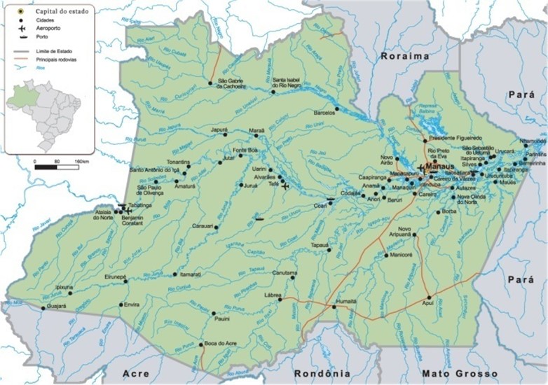 Estado de Amazonas: zona de Borba (río Madeira) y Novo Airao (río Negro), lugar del proyecto de ayuda.